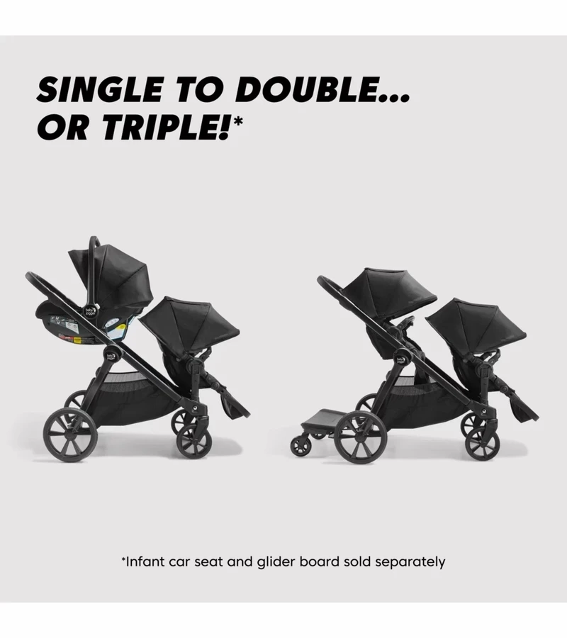 - Fully featured modular stroller converts from single to double with the included City Select® Second Seat Kit. With 24 modes of use, It can also convert to a triple stroller with a glider board (sold separately)