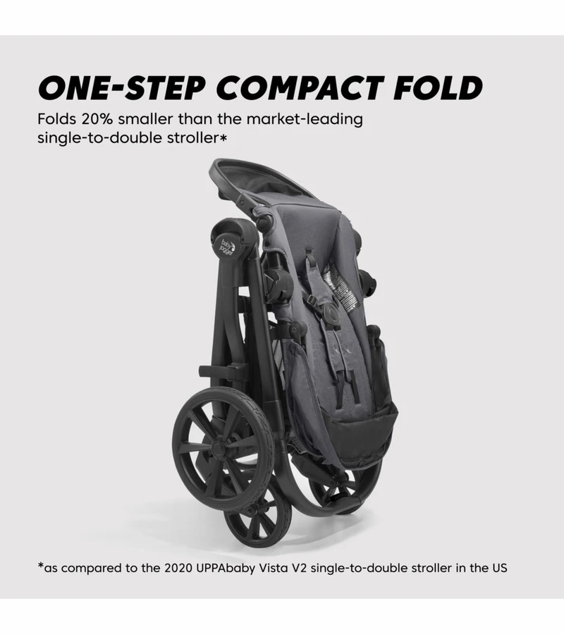 The Baby Jogger® City Select® 2 Stroller is a versatile dream for parents who know having only one option is not an option. With 24 configurations, this stroller converts from a single to a double with a second seat or infant car seat, or even to a triple stroller with a glider board! (Second seat and glider board sold separately.) It compactly folds 20% smaller than the market-leading single-to-double stroller, as compared to the 2020 UPPAbaby Vista V2 stroller in the US. And the lightweight design, telescoping handlebar, and ample storage space provide even more convenience for your everyday travels. Customize your City Select® 2 with a variety of accessories (sold separately) to create the all-in-one stroller that keeps your family going, even as it grows.