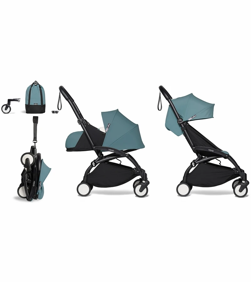 Babyzen YOYO2 Ultra Compact Complete 0+/6+ Stroller & Rolling Bag Bundle – Black/Aqua