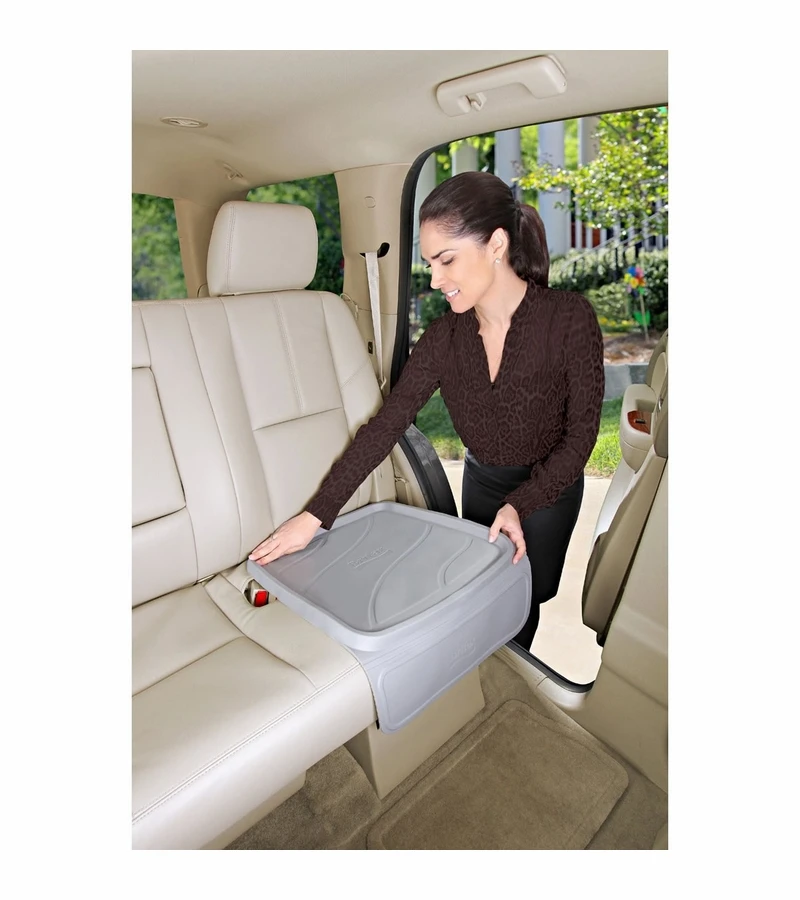 The Britax Vehicle Seat Protector offers an engineered, non-slip material offer best-in-class car seat crash performance while providing protection to the vehicle seat from spills, debris and compression. The Britax Vehicle Seat Protector is waterproof and easy to clean with raised edges on all sides to keep spills and debris contained, and a front seat guard that hangs over the vehicle seat to protect it from muddy shoes. The Vehicle Seat Protector is also latch compatible and crash tested and approved for use with Britax car seats.