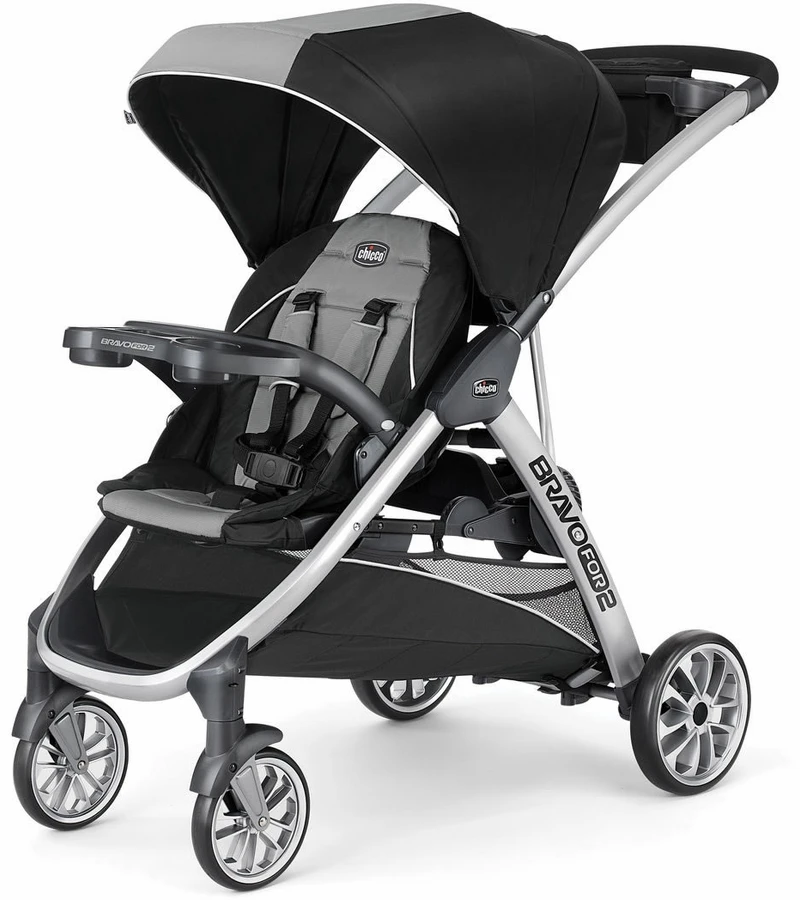 For younger children, BravoFor2 features a traditional padded stroller seat with a five-point harness, large adjustable canopy, and removable tray with two cup holders. For infants, BravoFor2 also functions as a travel system with the number #1-rated KeyFit Infant Car Seat and the new Fit2 Infant & Toddler Car Seat. The stroller seat easily folds forward to accept the car seat via integrated attachment points with a reassuring audible click. (car seat not included)