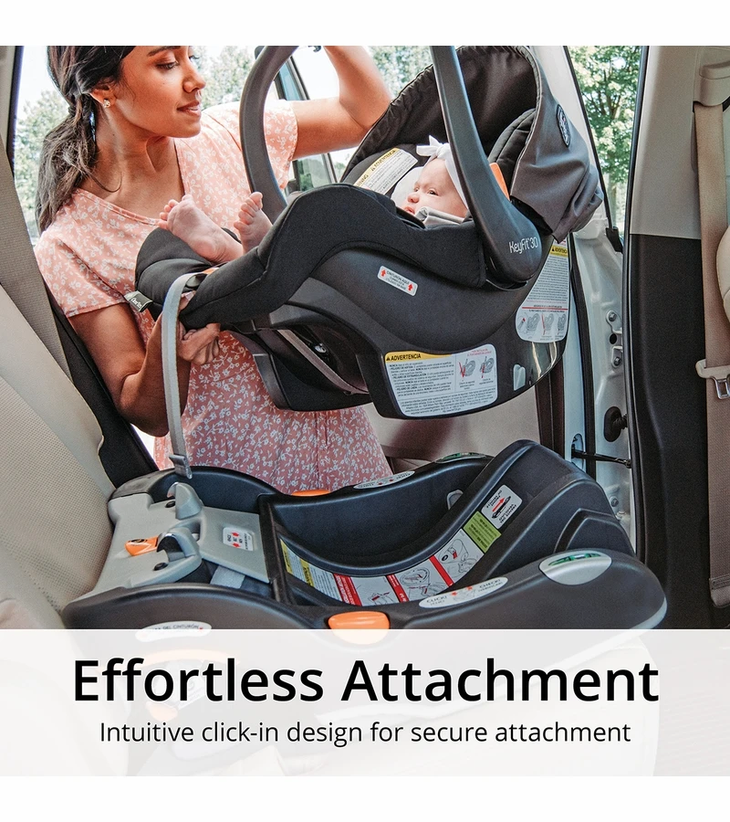 The KeyFit® 30 ClearTex® is engineered with innovative features that make it the easiest infant car seat to install simply, accurately and securely – every time. The lightweight carrier clicks effortlessly into the stay-in-car base and compatible Chicco strollers for easy, streamlined travel when you need it most.
