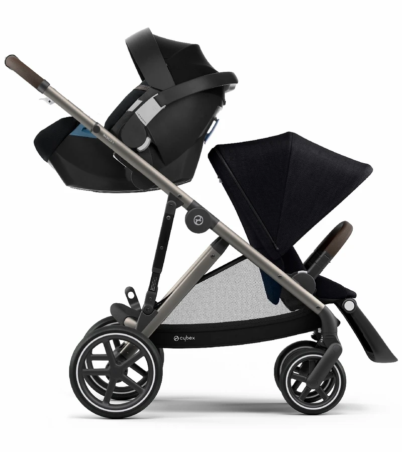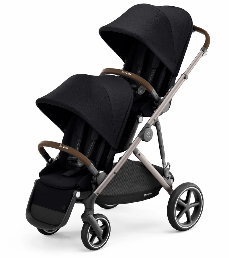Cybex Gazelle S Double Stroller – Deep Black (Taupe Frame)