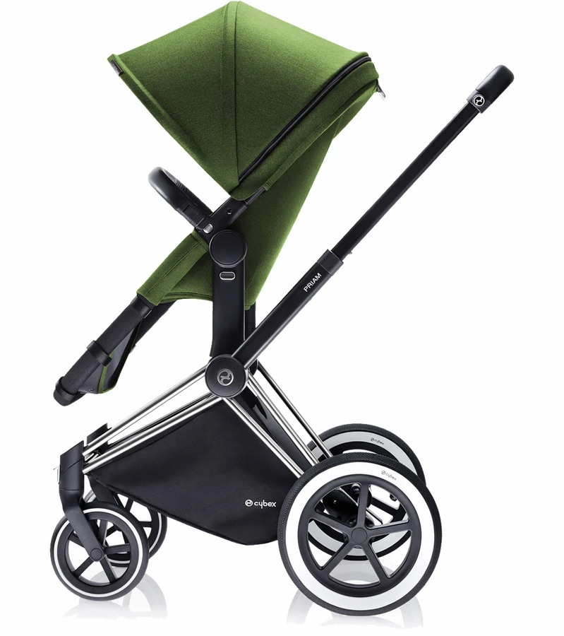 The CYBEX Priam is inspired by the ingenious simplicity, functionality and beauty of the designs by Ray and Charles Eames. The PRIAM 2-in1 Light Seat easily converts from a bassinet to a stroller using the same frame for two different fabric sets (both included) and can be used from birth up to 55 lbs. When used as a pram it is a full size Carry Cot with a covered mattress on top of a firm bottom, with a removable cover over the foot end.