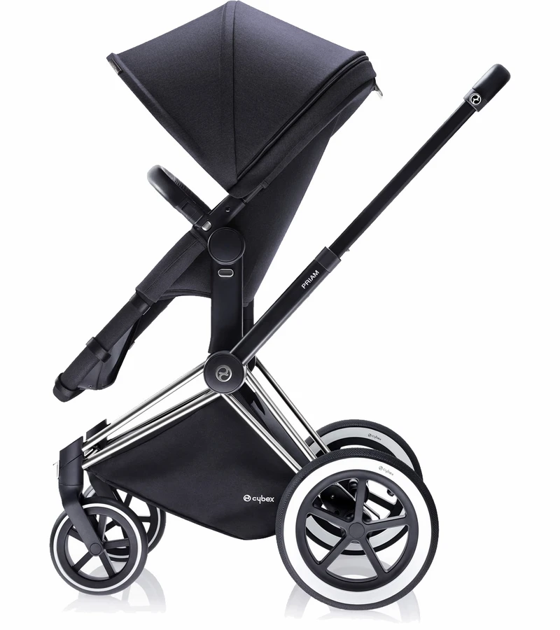 The CYBEX Priam is inspired by the ingenious simplicity, functionality and beauty of the designs by Ray and Charles Eames. The PRIAM 2-in1 Light Seat easily converts from a bassinet to a stroller using the same frame for two different fabric sets (both included) and can be used from birth up to 55 lbs. When used as a pram it is a full size Carry Cot with a covered mattress on top of a firm bottom, with a removable cover over the foot end.
