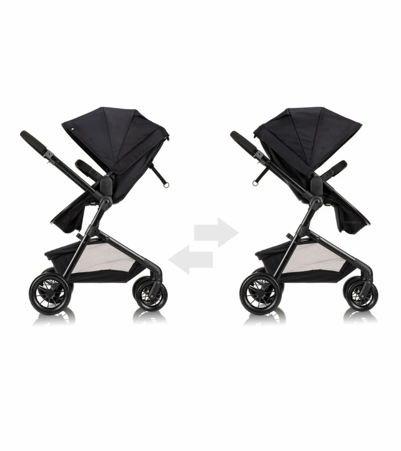 The Evenflo Pivot Modular Travel System is the multipurpose travel stroller youve been looking for. This exceptional carriage, stroller, and car seat combo is a durable travel system that includes the SafeMax Rear-Facing Infant Car Seat and SafeZone Base. The modular frame can be configured with up to 6 modes of use allowing your child to be parent-facing or forward-facing. While the stroller can easily convert to carriage mode, toddler mode, or a frame stroller with infant car seat. The toddler seat has a maximum weight of 50 lb, with height recommendations of up to 38 in (96 cm), while the car seat has a maximum weight of 35 lb. and up to 32 in. The SafeMax Rear-Facing Infant Car Seat is not only comfortable with a removable body pillow, it has been rollover and side-impact tested. It features an anti-rebound bar that limits the amount of rebound movement experienced in a frontal impact. Our integrated belt lock-off system provides peace of mind that the base has been securely and correctly installed.