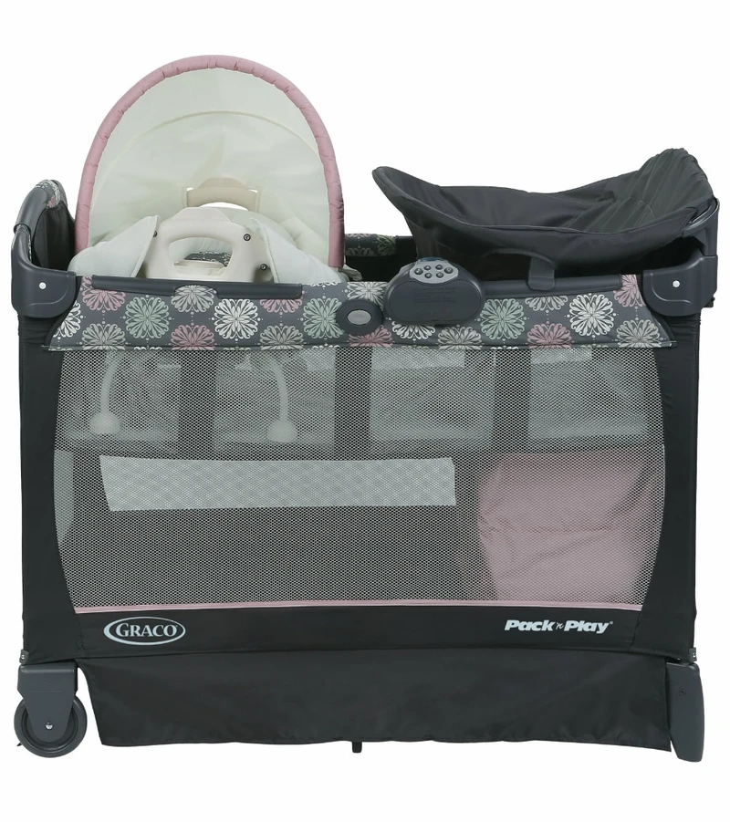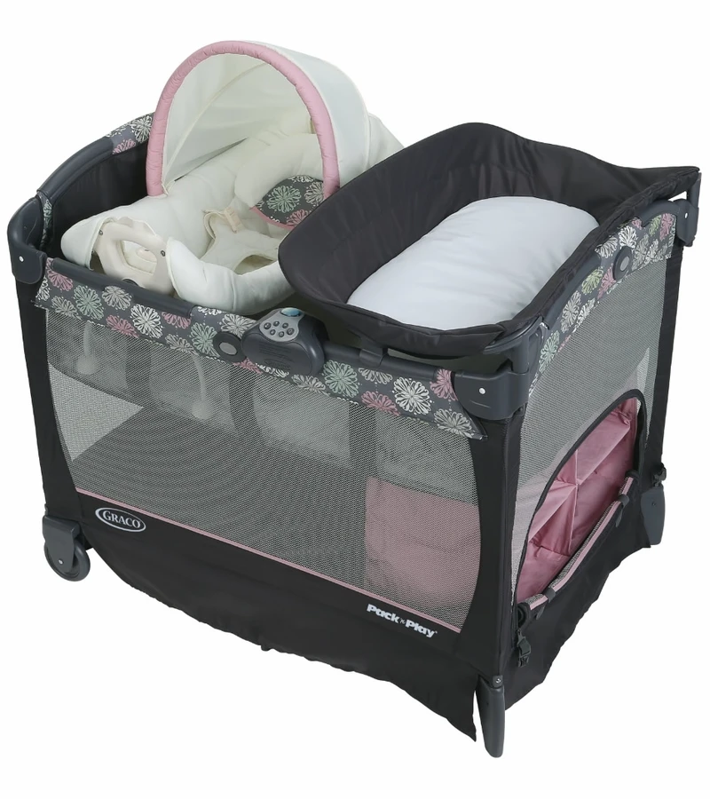 Graco?s Pack n? Play? Playard with Cuddle Cove? Removable Seat features a soft, cozy little nest to help you keep your baby cozy, relaxed and close to you. The Cuddle Cove removable seat includes fabrics that are soft on your newborn?s skin, gentle vibration to calm and soothe and carrying handles that allow you to move your child from room to room. Diaper changes are easier, too, with the convenient changing table and integrated storage shelves to keep all of baby’s necessities close at hand.