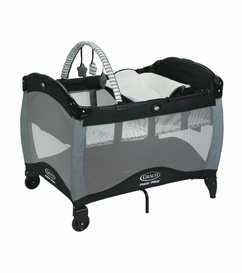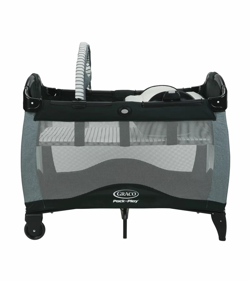 The Graco® Pack ‘n Play® Playard Reversible Seat & Changer™ offers the comfort of a cozy seat for your newborn and the convenience of a diaper changer, all-in-one. The reversible unit easily transitions from a cozy play space for your newborn into a changer to make keeping baby clean and content a breeze. This playard is designed to meet your child’s needs as they grow from a newborn to an infant to a toddler.