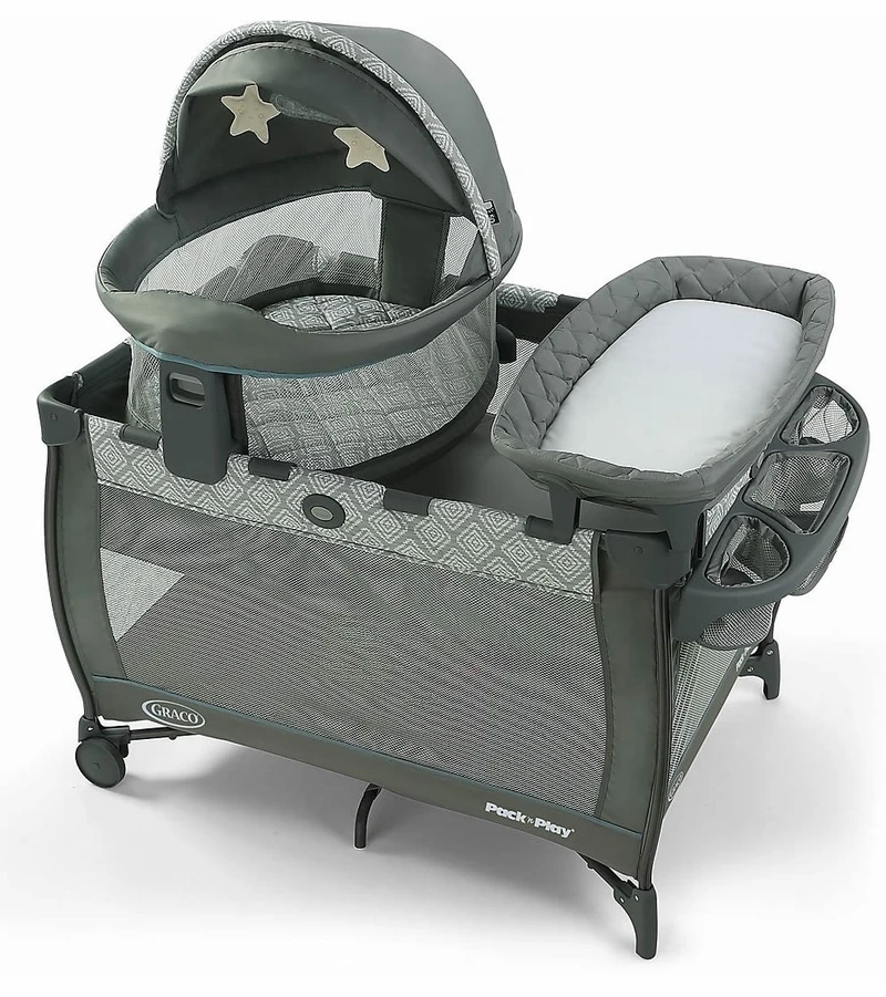 - Full-size infant bassinet provides an easy-to-reach and easy-to-view spot for your baby to sleep