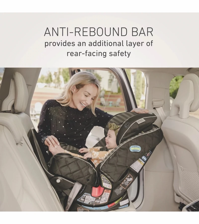 - Anti-Rebound Bar provides an additional layer of rear-facing safety by limiting rotation of the seat and your child in the event of an impact