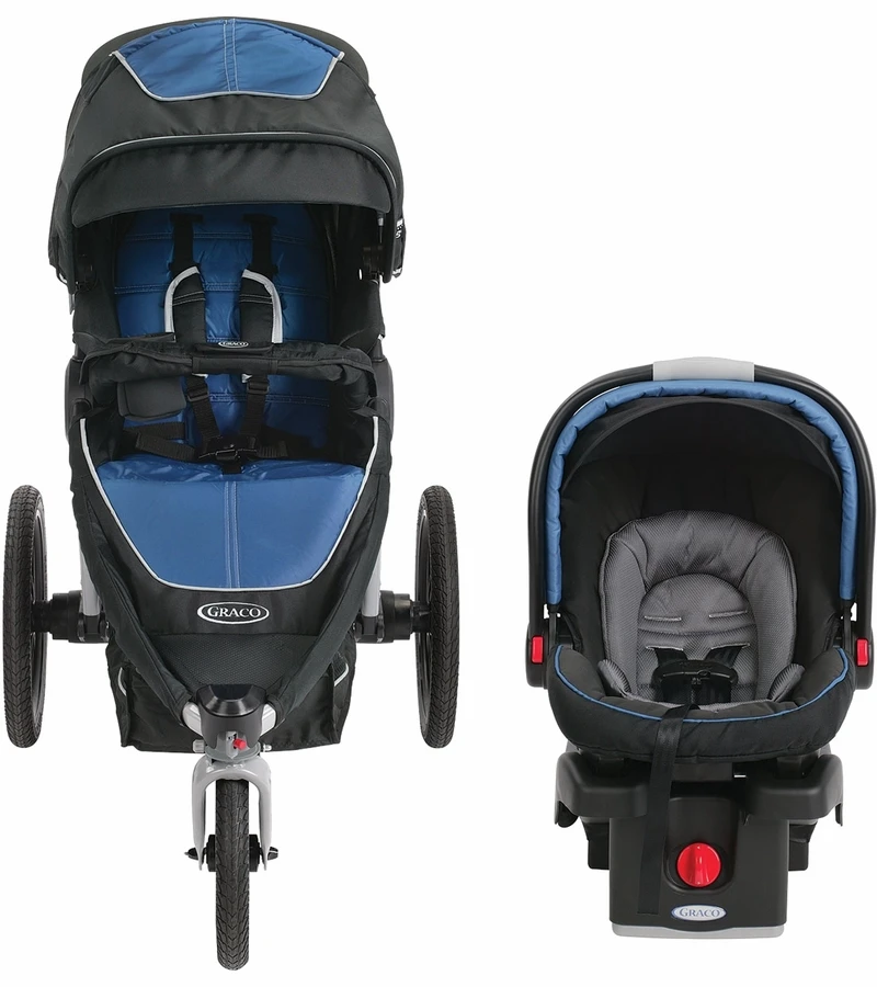Graco?s Relay Click Connect Jogging Stroller Travel System is the ultimate performance jogger ?and includes everything you need to involve your child in your active lifestyle. The included top-rated SnugRide Click Connect 35 Infant Car Seat attaches to the stroller in a secure, one-step attachment. The jogging stroller is designed for avid joggers with air-filled rubber tires, locking front-swivel wheel with tracking, premium suspension and lightweight frame. Reflective, tech-fabric helps keep you visible in low light and the UV50 canopy gives your child sun protection. It’s what you need to go the extra mile!