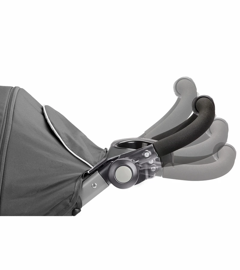 - Parent’s tray with storage and 2 cup deep holders for on-the-go convenience
