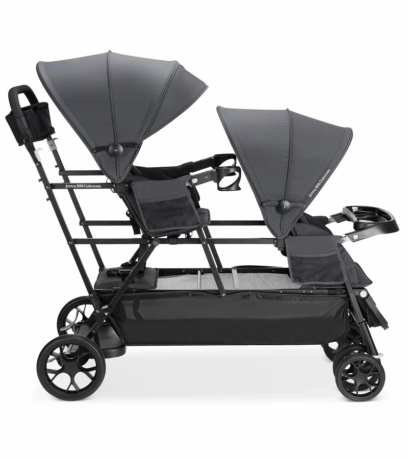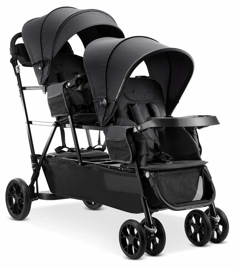 You just hit the trifecta in strollers – durable, stain resistant and room for three. Our triple stand-on tandem stroller is the perfect solution for twins plus a toddler. Got a crew of stairstep kids? This is the stroller you’ve been waiting for. It’s how big families roll!