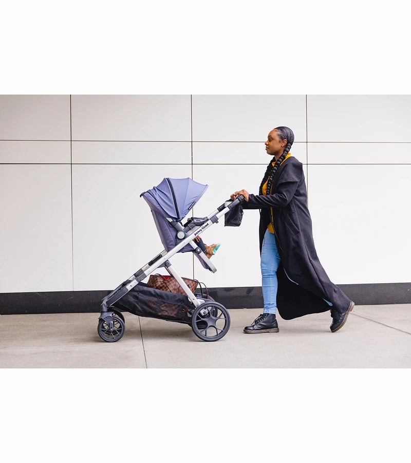 The Qool has better storage than ever and features an extra-large parent organizer and easy access lower storage basket, capable of holding 25 lbs’ worth of items. Use it to store everything from snacks and your handbag to diapers and toys.