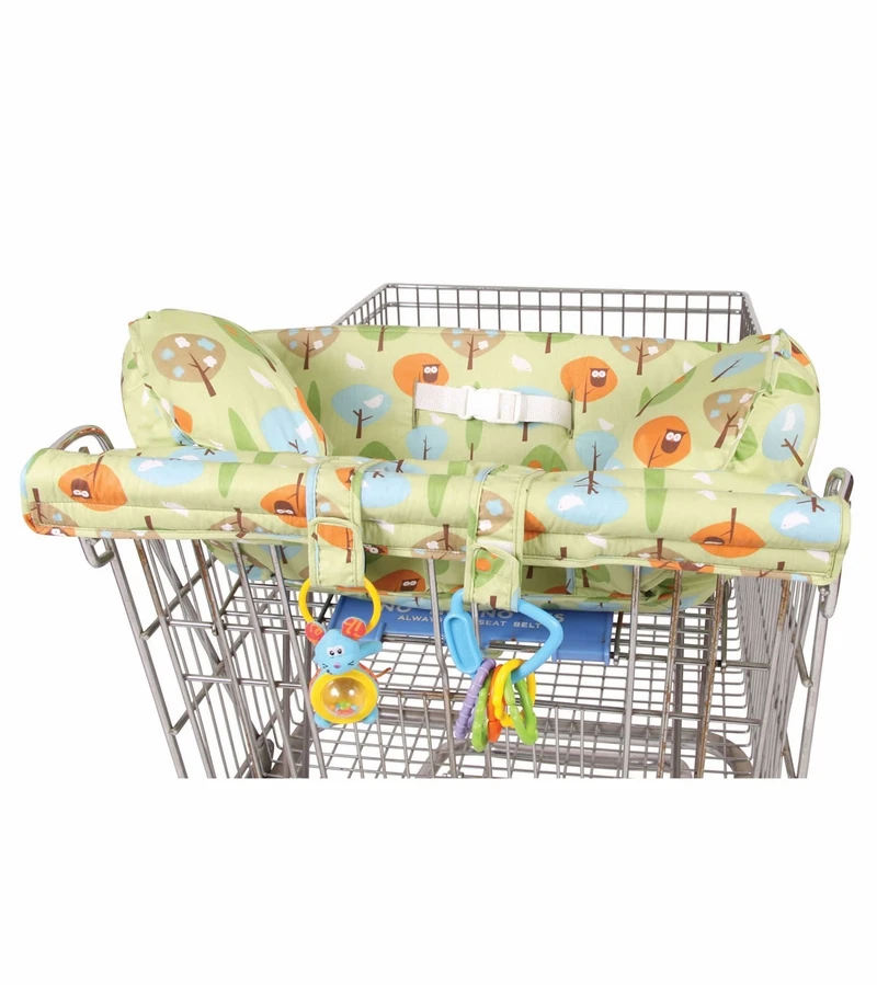 Protect your baby from sticky, dirty, germ-filled shopping cart surfaces with the Prop ‘R Shopper. The thickly padded cover includes two soft and cushiony pillow props to keep your baby upright, as well as toy tabs to keep baby’s favorite toys and teethers nearby while you shop. The adjustable safety belt helps keep baby safely in place and seated. Includes a convenient storage pouch for all your shopping essentials.