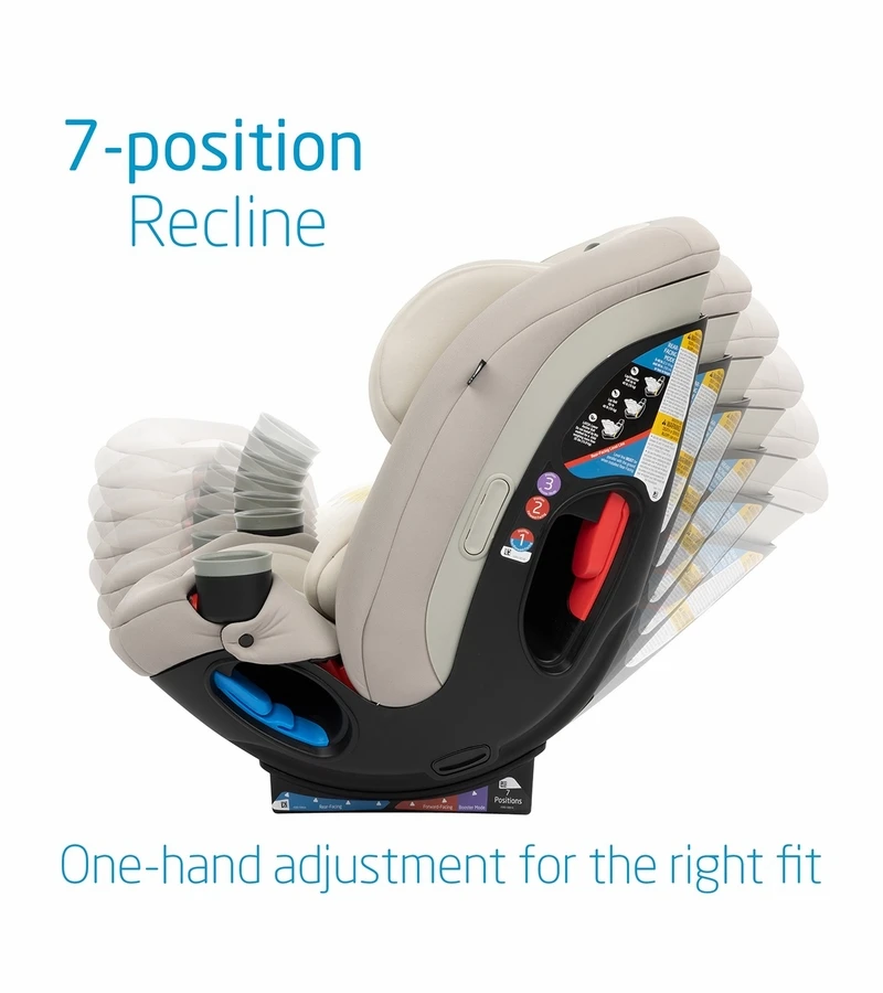 - One-handed recline with 7 positions to choose from.