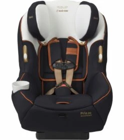 The Pria 85 is the only premium convertible car seat that offers a first-class ride from 14-85 pounds. It is also specially designed to fit better in your car, allowing more room for your passengers to stretch out in the front seats. It fits your style too. With authentic cognac leather accents, gold and white harness holders, luxurious black fabrics, and a crisp white cup holder; the Rachel Zoe x Maxi-Cosi Pria 85 is a step above the rest.