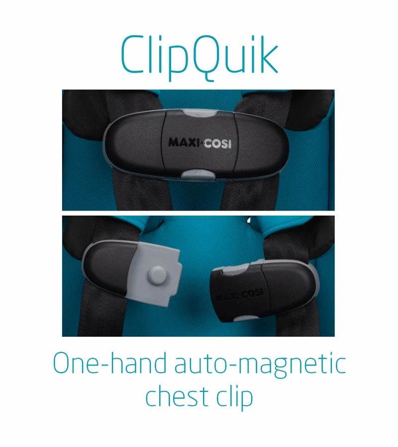 - ClipQuik™ auto-magnetic chest clip gets you on your way quickly
