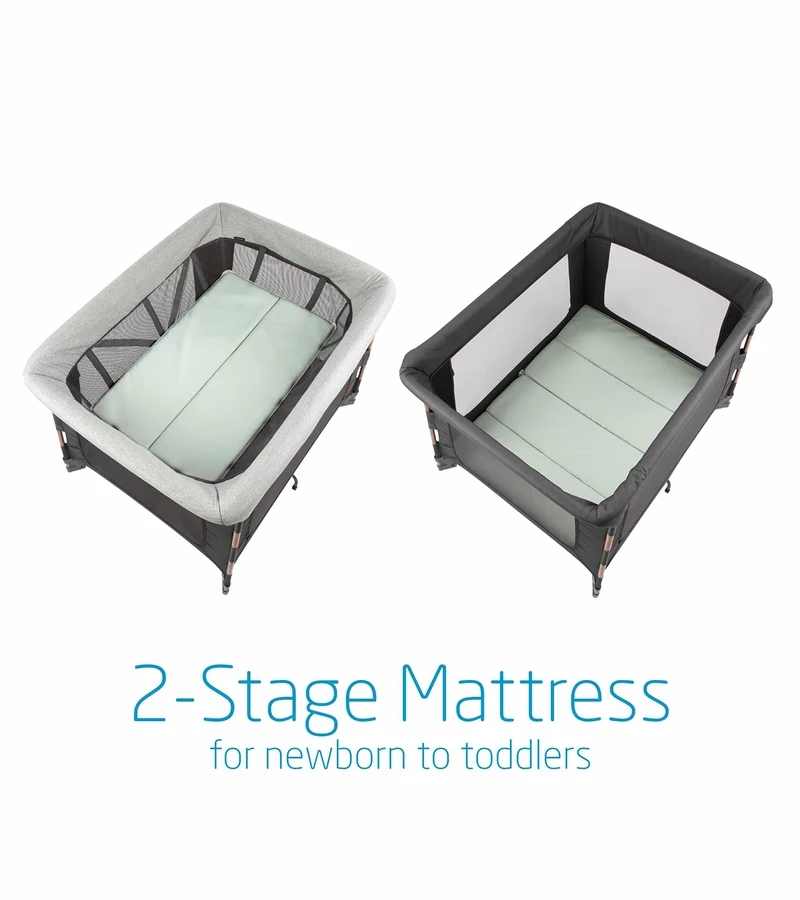 The Swift has a unique 2-stage mattress that unzips to perfectly fit the bassinet, providing a smaller, cozier mattress that’s ideal for newborns. As your baby grows, the mattress zips back together to create a larger, super-comfy space for playtime or a well-deserved nap.