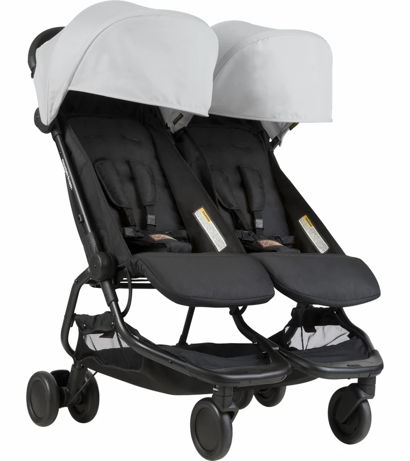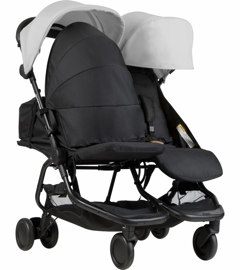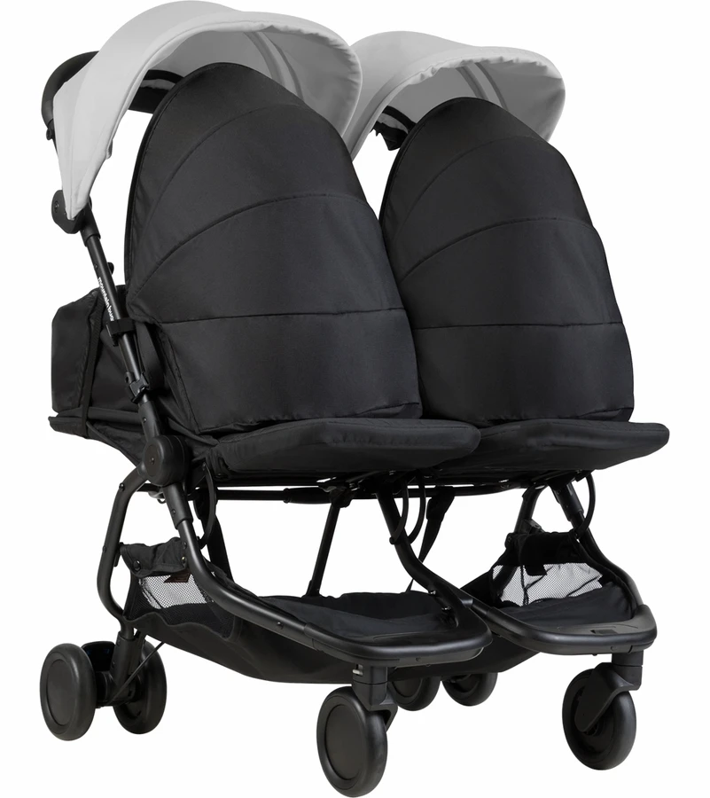 An incredibly lightweight side-by-side that delivers the perfect solution for city dwelling parents when storage is at a premium and pushing two children needs to be effortless. Featuring an ultra compact fold and the ability to offer newborn solutions for siblings or twins with the additional cocoon accessory, Nano Duo offers a true Mountain Buggy experience for parents living life without limit. Outstanding kerb pop and maneuverability. Cleverly engineered with perfect weight distribution, Nano Duo allows you to easily pop the front wheel up kerbs and obstacles.