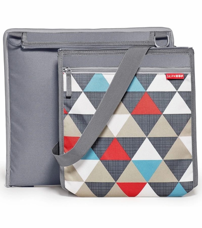 Once you reach your destination, it unfolds into a spacious water-resistant blanket, keeping everyone’s picnic clean and dry. This versatile blanket features an insulated cooler bag to chill snacks and drinks; there’s even room for parent essentials. Detach the cooler bag and it becomes a compact messenger for quick trips to the ice cream stand!