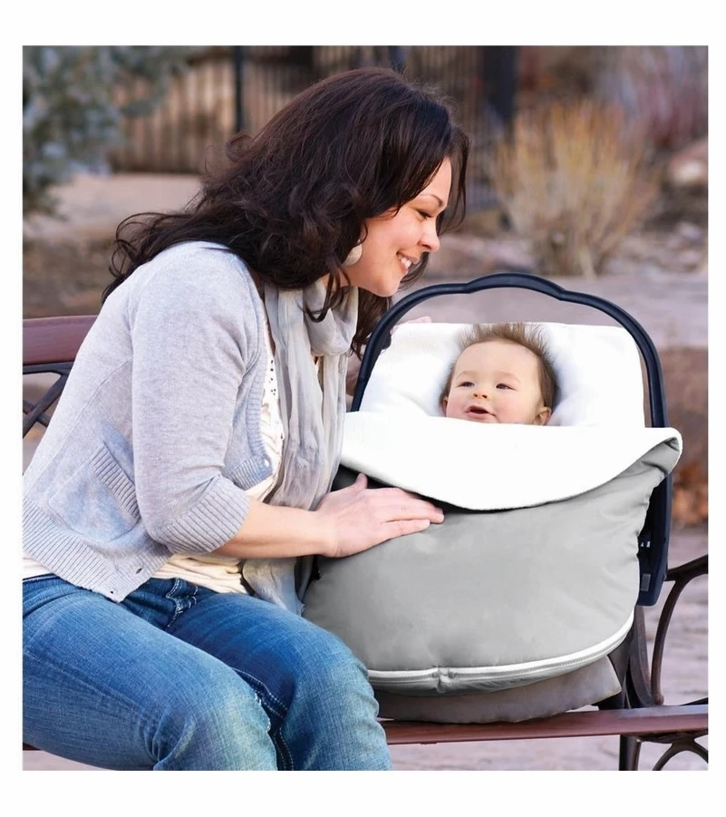 Your baby will be warm as a toast in The First Years Gray Baby Bundle. The inner fleece keeps your baby snug and dry, while the wind and water-resistant exterior cover of this stroller bunting bag protects your baby from the elements. Your tot will enjoy the utmost warmth and comfort when you carry him outside on a cold day in this infant bunting bag.
