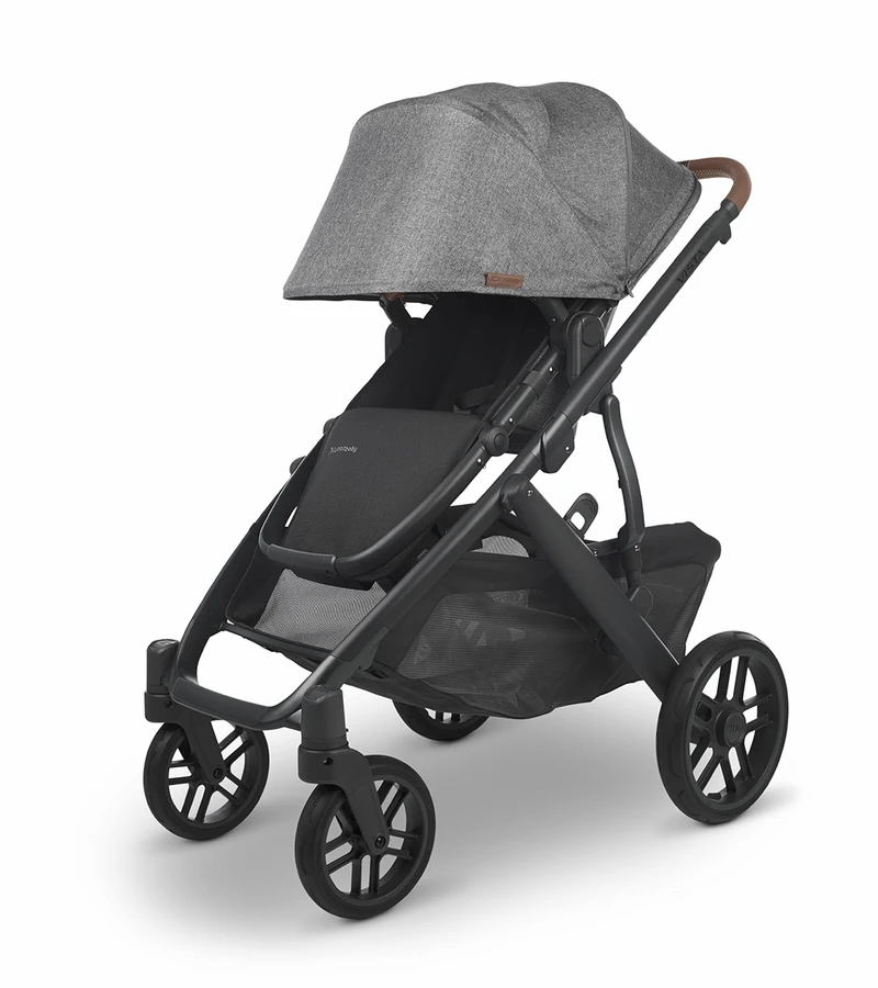 UPPAbaby Vista V2 Single-to-Double Stroller – Greyson (Charcoal Melange/Carbon/Saddle Leather)
